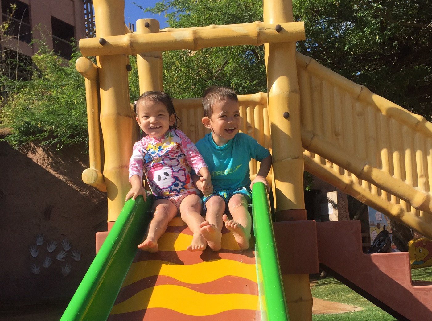Temperature was so nice on the island; all we needed were swimwear, flipflops, and a swimming pool. Where we used to travel around places wanting to see as much as we could when it was just the two of us, we now only left the hotel to buy diapers. Or how having kids has changed our travel habits…